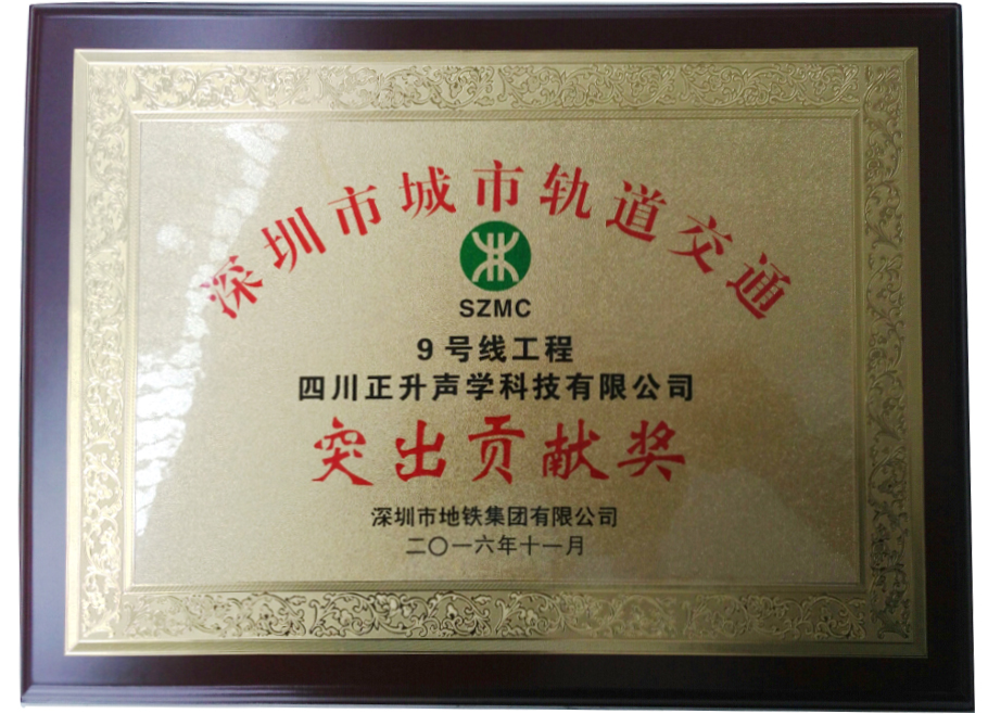 本報訊 2016年11月14日,從深圳市地鐵集團有限公司傳來喜報。我公司負責消聲器供貨的深圳地鐵九號線項目,榮獲由深圳市地鐵集團有限公司頒發(fā)的9號線工程參建單位“突出貢獻獎”榮譽獎。