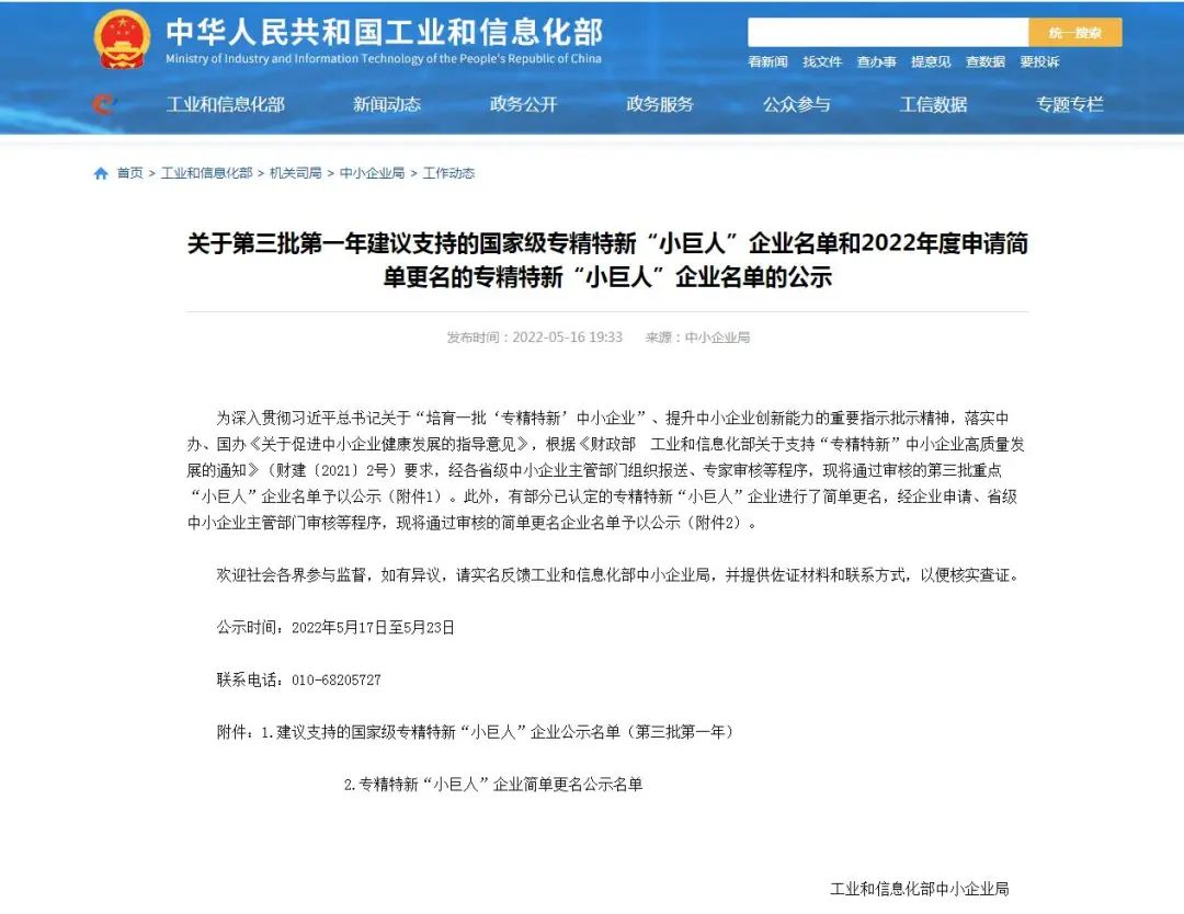 近日,工信部中小企業(yè)局公示了第三批第一年建議支持的國家級(jí)專精特新“小巨人”企業(yè)名單,正升環(huán)境科技股份有限公司成功入選。正升環(huán)境從數(shù)千家國家級(jí)專精特新“小巨人”企業(yè)中脫穎而出,成為四川省29家之一,也是本次成都市溫江區(qū)唯一入選企業(yè)。